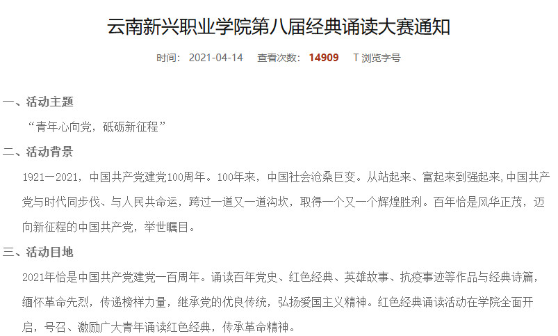 云南新兴职业学院第六届“书香校园”经典诵读大赛