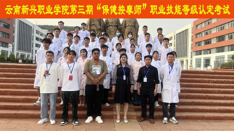 2023年4月17日下午,组织学生参加人力资源和社会保障厅保健按摩师(初级)职业技能等级认定考试,在云南新兴职业学院举办,34名考生参加了考核。鉴定分为理论考试和实操考试两个部分,此次参加鉴定的主要是我校学生。...