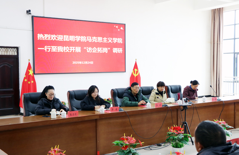 为深入贯彻落实立德树人根本任务,深化校际思政教育协同合作,拓展人才培养与就业渠道,2025年12月24日上午,昆明学院马克思主义学院一行莅临我校开展“访企拓岗”暨合作共建座谈会。座谈会在我校仁德楼402会议室举...
