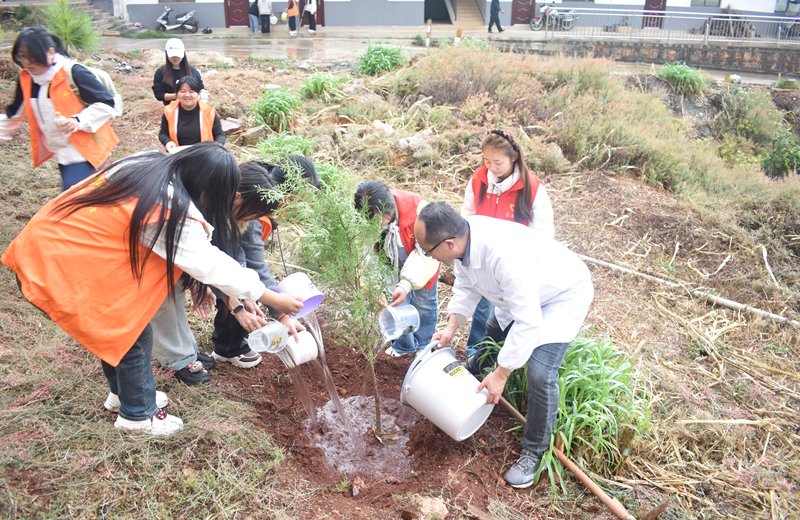 春回大地暖,植绿正当时。为深入践行生态文明理念,扎实推进党建带团建工作走深走实,同时引导全体师生党员、团员树立和践行正确政绩观,以实干实绩为校园发展增光添彩,在3月12日植树节当天,药学院党支部携手团总支,在校园绿化区开展“党建引领践初心,青春添绿护校园”植树活动,学院党支部党员、团员共同参与此次植绿行动。