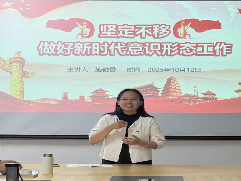 为做好新形势下意识形态工作,筑牢意识形态安全防线,10月12日晚,马克思主义学院党支部宣传委员兼统战委员施俊香以《坚定不移做好新时代意识形态工作》为题,给马克思主义学院党支部全体正式党员、发展对象、入党积极分子讲授了一堂主题鲜明的专题党课。