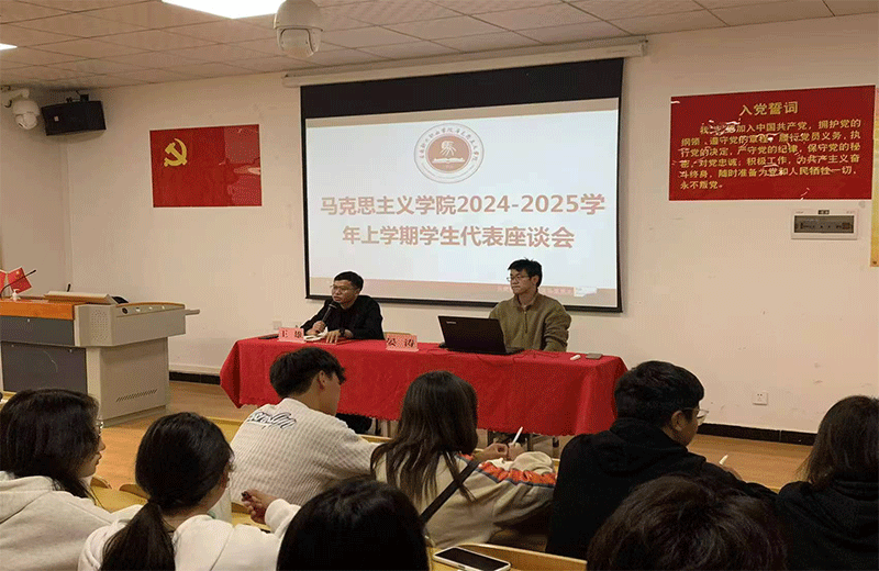 为深入了解学生思想动态,加强师生沟通,提升思想政治理论课(以下简称“思政课”)教学质量。马克思主义学院于10月16日在勤奋楼110会议室成功召开了学生代表座谈会,会议由马克思主义学院院长王雄主持。