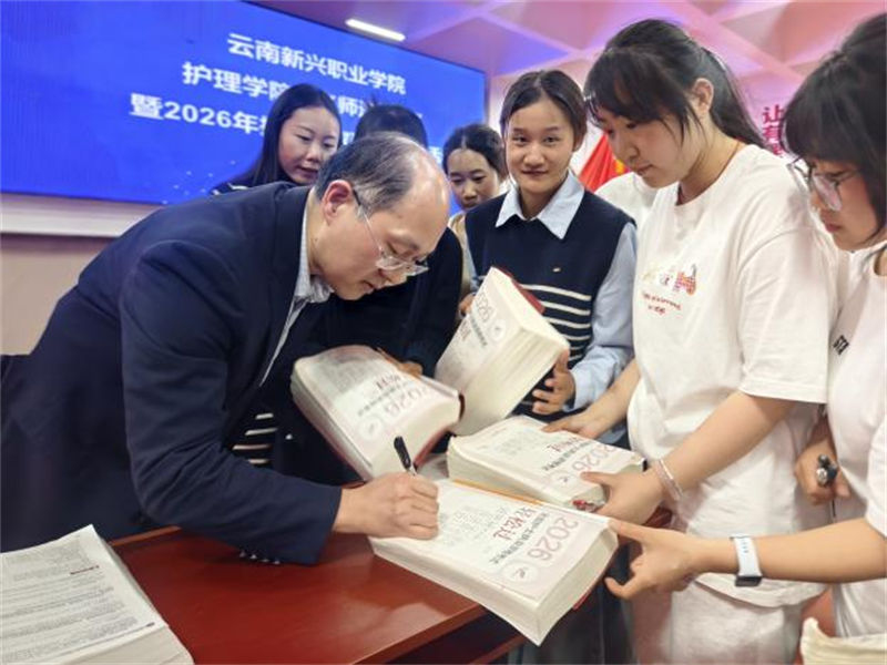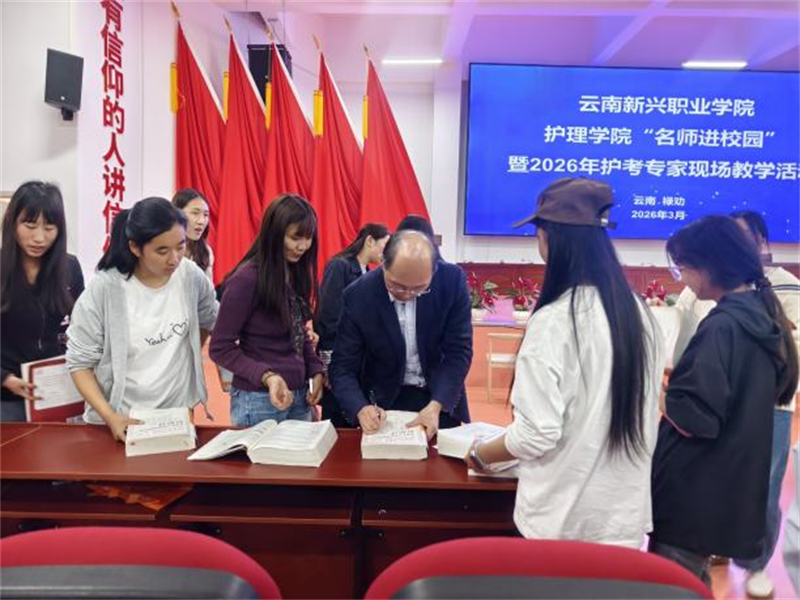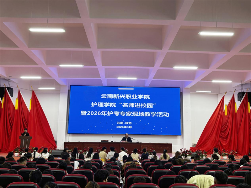 春风浩荡启新程,匠心筑梦护前行。为全面赋能2026届护理、助产专业学子护士执业资格考试备考,切实提升人才培养质量与就业核心竞争力,2026年3月27—28日,云南新兴职业学院特邀人民卫生出版社资深专家、全国护考辅导名师罗先武教授莅临我校,开展“名师进校园”暨2026届护士执业资格考试培训考前串讲活动。护理学院领导班子、全体任课教师及2026届护理、助产专业千余名学子齐聚学校报告厅,共赴这场干货满满、赋能成长的知识盛宴。