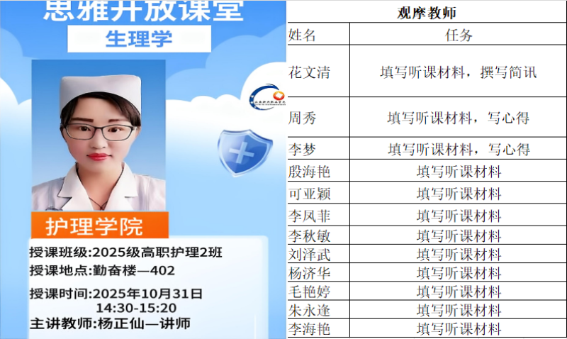 生命不息,循环不止。主题聚焦于维系生命的核心系统——“血液循环”。本次课程旨在引领学员们深入理解人体这一精妙绝伦的运输网络,揭开心脏不息跳动、血液奔流不止背后的科学原理。2025年10月31日14:30-15:20,思雅开放课堂于勤奋楼402教室开展“血液循环”专题教学活动。本次课程由杨正仙老师主讲,引领学员们进行了一场穿越人体血管网络的奇妙旅程,深入解析了维系生命的核心动力——血液循环的精密机制。