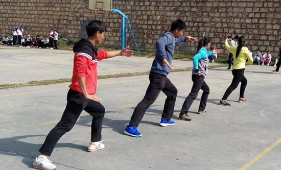 由于我们本学期前九周开设的刚好是太极拳课,所以,太极拳专家们表演结束后,我们的体育教师就把自己所带班级的学生组织去田径场,然后请太极拳专家们进班级进行指导,课间学生休息的时候,我们的体育教师就主动找这些专家对自己的太极拳进行指导,然后还分别和专家们进行了交流,专家们肯定了我校体育教师的基本素质和认真的教学态度,并对我们学校所开设的24式太极拳的每一个动作给出了相关的意见和建议。