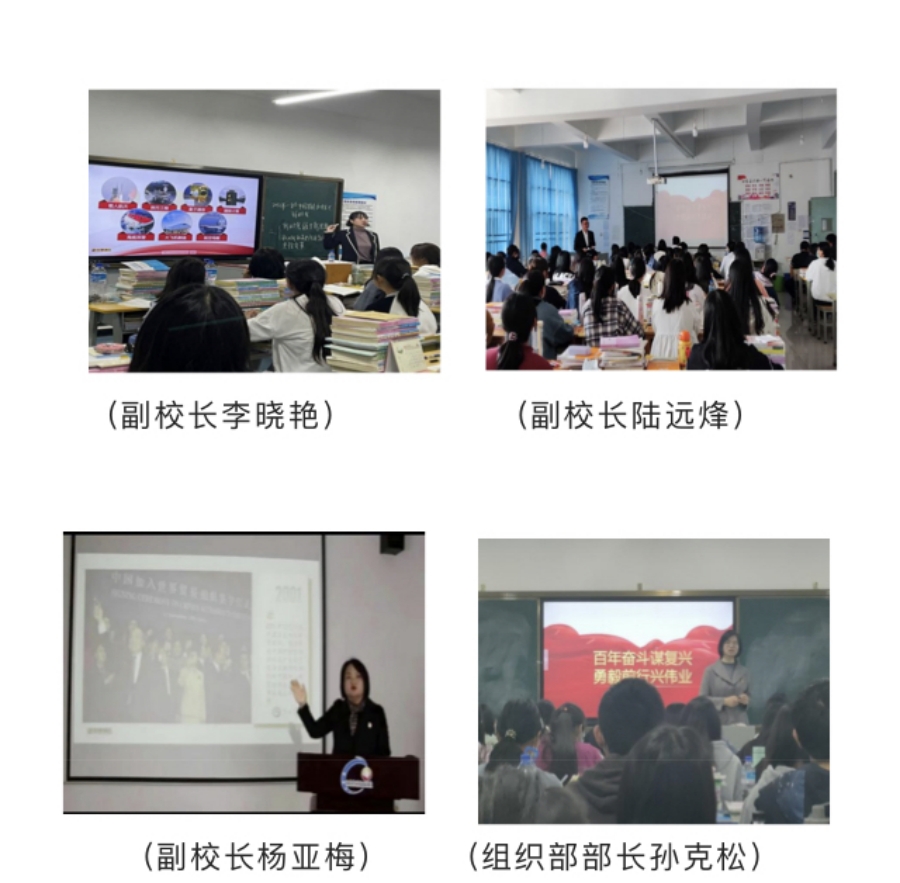 授课过程中,各位领导紧扣“百年奋斗谋复兴 勇毅前行兴伟业”这一主题,围绕“中华民族伟大复兴”这条主线,结合实例,循循诱导,把百年间中国共产党如何带领中国人民砥砺奋进、风雨兼程,实现了从站起来、富起来到强起来的历史飞跃娓娓道来。启发学生承载时代梦想,勇担时代重任,牢记青春使命,坚定理想信念,以更加自信的人生姿态、更加蓬勃的创造活力,勇立在新时代的潮头。
