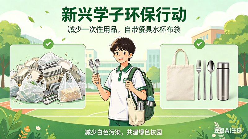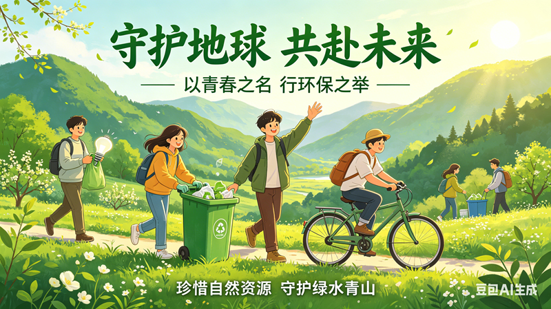 环保无小事,行动见初心。世界地球日从来不是一句简单的口号,而是贯穿我们日常的责任与坚守。作为新兴学子,我们可以从身边的点滴做起:随手关闭未熄灭的电灯、水龙头,践行“人走灯灭、人离水停”,节约每一度电、每一滴水;减少一次性用品使用,自带餐具、水杯,用布袋代替塑料袋,减少白色污染;积极参与校园垃圾分类,主动学习环保知识,将废旧物品进行合理回收利用,让“废品焕彩”成为校园常态;主动参与植绿护绿活动,呵护校园里的一草一木,用绿意装点校园,用行动守护自然。