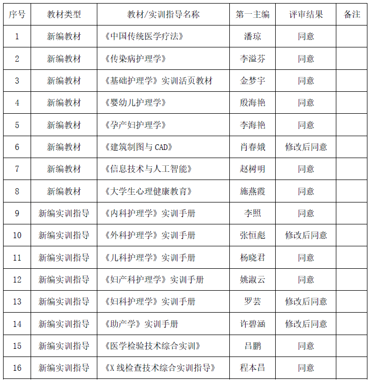 云南新兴职业学院第一轮校本教材建设验收结果公示一览表