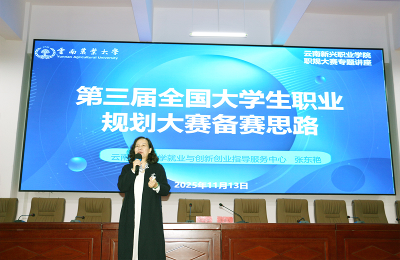 11月13日,云南新兴职业学院在报告厅成功举行第三届全国大学生职业规划大赛校赛动员会暨指导教师培训会。会议特邀云南农业大学就业与创新创业指导服务中心主任张东艳作为主讲嘉宾开展专题培训,参加此次会议的有:云南新兴职业学院党委副书记李晓艳、云南新兴职业学院党委委员常务副校长李地新,党委委员副校长杨亚梅,各相关职能部门负责人,各二级学院院长,学工科科长及全体辅导员,实习就业处全体工作人员和各班级学生代表。
