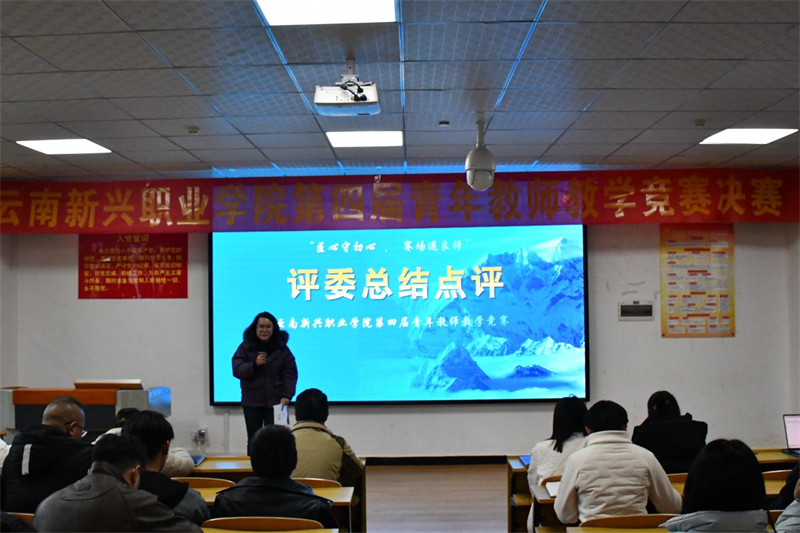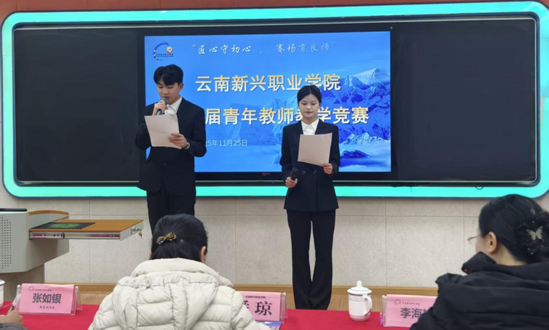为深入推进教育教学改革,强化青年教师队伍专业能力建设,2025年11月25日,云南新兴职业学院第四届青年教师教学竞赛在新校区10栋601智慧教室正式拉开帷幕。本次竞赛聚焦“匠心守初心、赛场育良师”,通过搭建展示、交流、提升的专业平台,助力青年教师提升教学能力和育人水平,推动学校高质量发展。