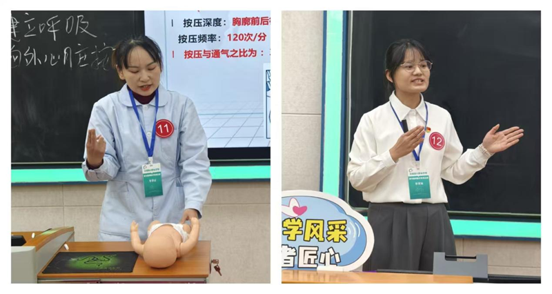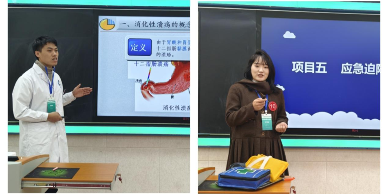 开幕式结束后,参赛教师按照抽签顺序依次登台,开启教学展示环节。竞赛现场,选手们立足专业课程核心内容,结合职业教育特点,创新运用信息化教学工具、理实一体化设计、案例式教学等方式,打造了一堂堂兼具专业性与趣味性的优质课程:有的教师以临床案例切入专业知识点,将抽象理论转化为具象实践;有的教师通过互动式教学激活课堂氛围,实现“教、学、做”深度融合;有的教师巧妙融入思政元素,将职业精神、人文素养与专业内容有机结合,充分展现了学院青年教师在教学设计、课堂把控、育人融合等方面的扎实功底与创新思路。