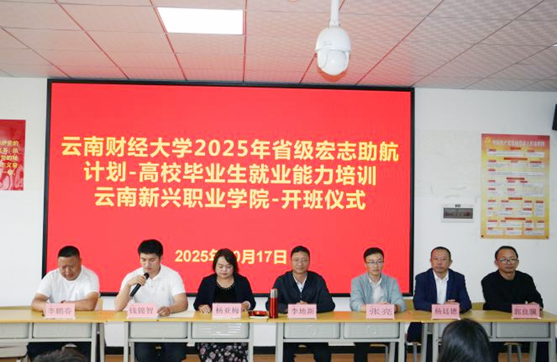 为深入贯彻落实党中央、国务院和省委、省政府、省委教育工委、省教育厅关于高校毕业生就业工作的决策部署,切实提升毕业生就业竞争力与综合素质,促进学校毕业生高质量充分就业。学校聚焦低收入家庭等重点群体毕业生,组织共计学员150人参加云南财经大学2025年省级宏志助航计划-高校毕业生就业能力培训。云南新兴职业学院于10月17日在护理学院101会议室举行开班仪式。云南财经大学中华职业学院就业与创业服务办公室负责人杨廷德;马克思主义学院副教授郭良骥;招生与职业发展中心大学生创新创业指导服务办公室张亮;云南新兴职业学院党委委员、常务副校长李地新;党委委员、副校长杨亚梅;就业处处长钱锦智;学工部副部长李鹏春;全体学员参加此次开班仪式。
