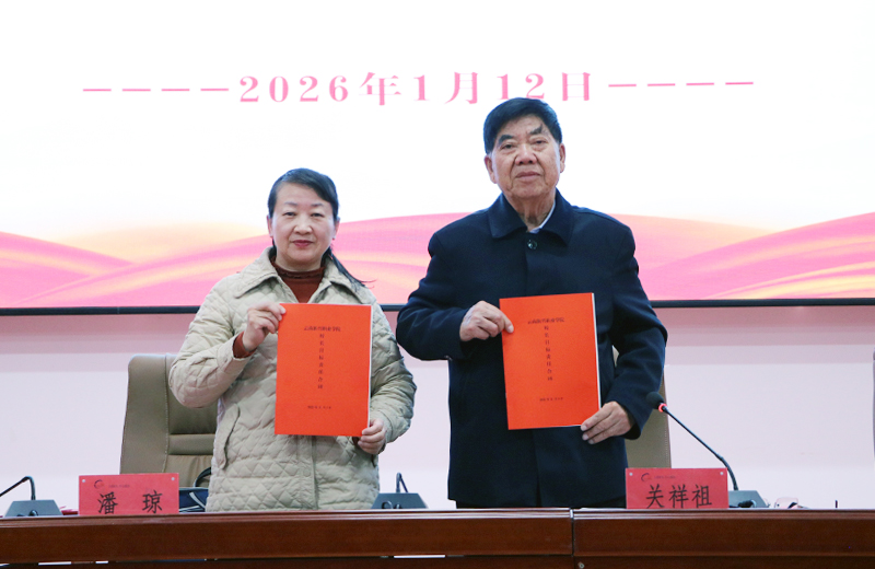 关祥祖董事长和潘琼校长签订目标责任书