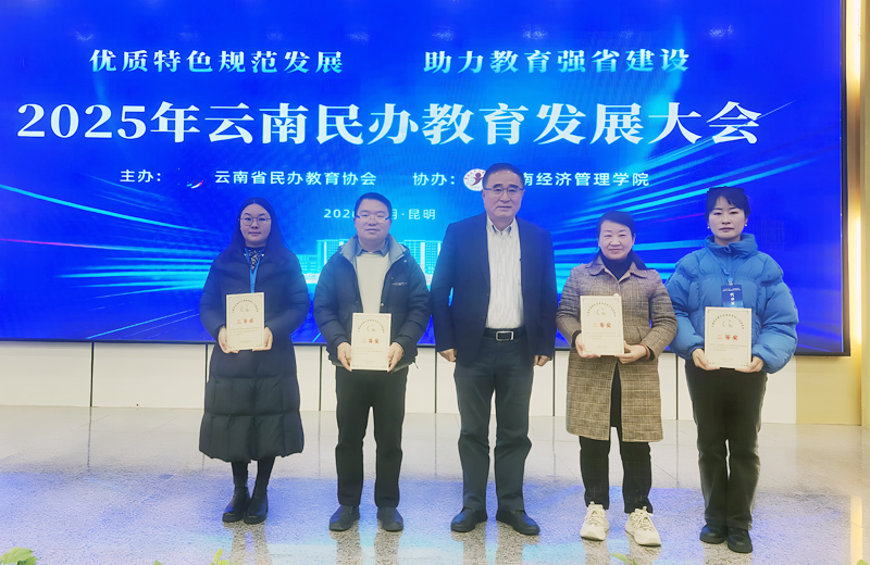 2026年1月16日,云南省民办教育协会举行“2025年云南民办教育发展大会”。会上公布了2025年度民办教育科研成果展示交流活动的评选结果,并举行了颁奖仪式。学校潘琼校长、科研与信息中心李彦升处长以及获奖教师代表杨永青、赵敏老师应邀出席了发展大会及颁奖典礼。