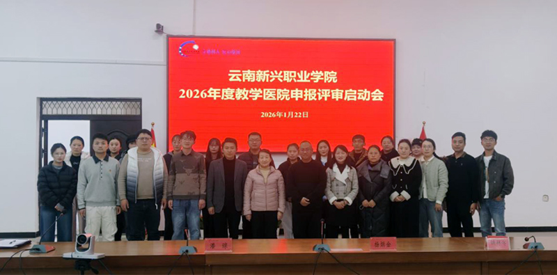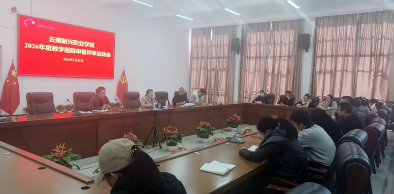 为扎实推动2026年度教学医院申报评审工作规范、高效开展,深化产教融合与医教协同,云南新兴职业学院于2026年1月22日下午在仁德楼402会议室组织召开了专项工作启动会。会议由医学康复学院杨炳金院长主持,学校党委委员、校长潘琼,实习处处长姚会文、教务处副处长姚林冬、各二级学院负责人、工作小组成员等共计三十余人参会。