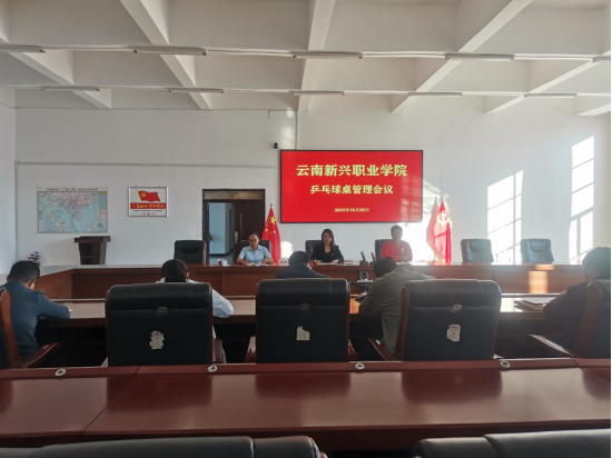 2023年10月26日下午17时00分,学校党委委员、副校长李晓艳在新校区仁德楼4楼会议室召开乒乓球桌管理工作会议,参加本次会议的人员有各二级学院院长、专职副书记、副院长、基础部相关负责人。