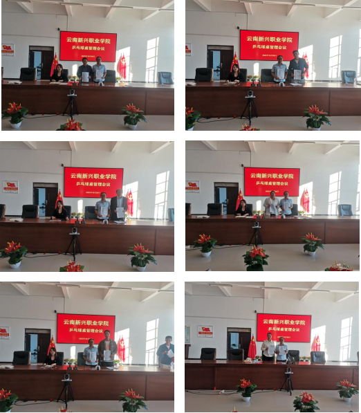 会议由基础部吕艳琼主任主持,首先吕主任介绍了参加会议的领导。接下来,会议按照议程依次进行:为贯彻《中共中央国务院关于深化教育改革全面推进素质教育的决定》提出的“学校教育要树立健康第一的指导思想,切实加强体育工作”文件精神和《云南新兴职业学院学生综合素质提升计划》文件要求,在学校领导的大力支持下,目前新校区购置90台乒乓球桌,水海子校区购置10台乒乓球桌,面向全体在校学生开放,采取多种形式激发学生的运动兴趣,广泛开展全民健身活动,加快推进体育强国建设。