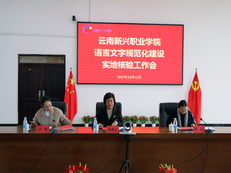 2025年12月12日,云南省教育厅语言文字规范化建设实地核验工作组一行莅临云南新兴职业学院,对学校语言文字规范化建设工作进行全面细致的实地核验。此次核验工作旨在进一步提升学校语言文字工作水平,推动学校教育教学质量的全面提升。