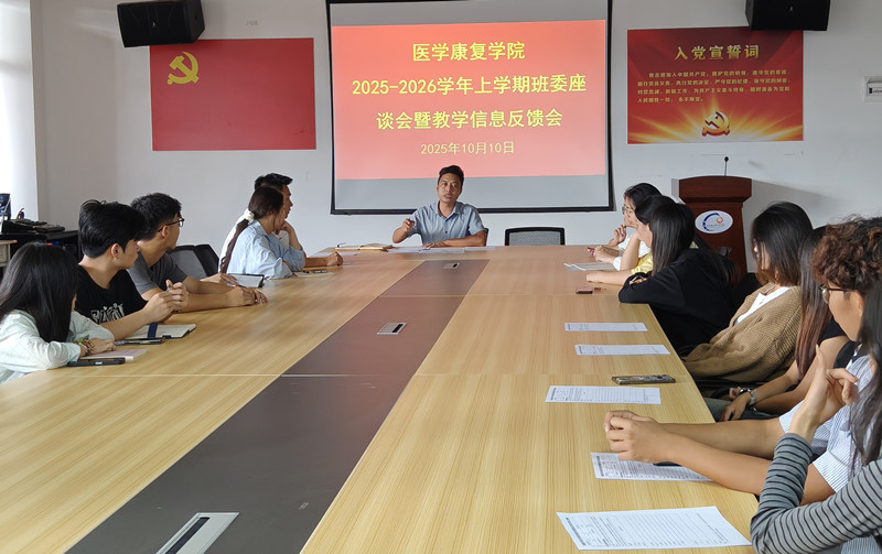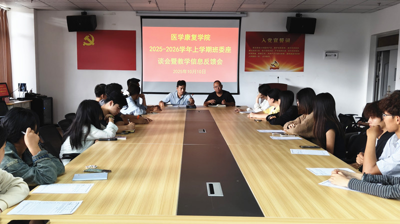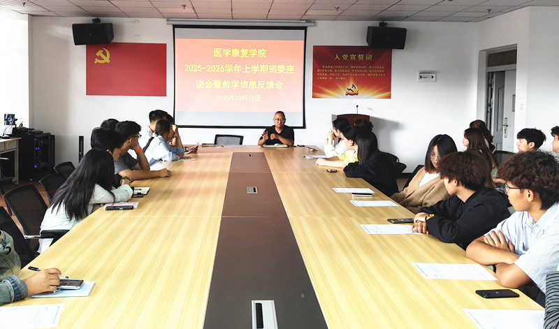 为加强班级管理,畅通教学信息反馈渠道,2025年10月10日,在医学康复学院4-211室召开班委座谈会暨教学信息反馈会。学院2022级五年制、2023级五年制、2024级五年制、2024级中专、2024级高职各班班长、学习委员参会。