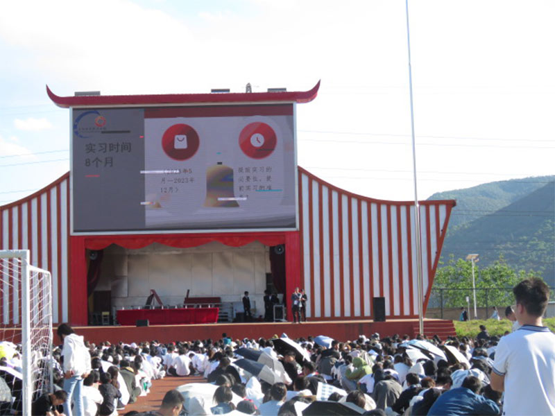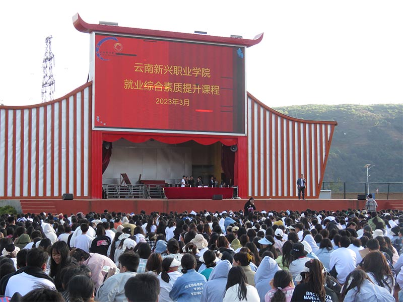 为贯彻落实《教育部等八部⻔关于印发<职业学校学⽣实习管理规定>的通知》、《云南省职业学校学生实习管理规定》的⽂件精神,规范管理实习,认真做好学校2023年实习管理⼯作,2023年4⽉5⽇下午 4 点,我校2023年实习⼯作动员大会在禄劝校区⾜球场召开。云南新兴职业学院党委委员、主管实习就业创业⼯作的副校长杨亚梅作了实习总动员,本次大会的内容也涵盖了学校“就业素质课程提升”的实习板块 ,会议由徐洪举副处长主持。