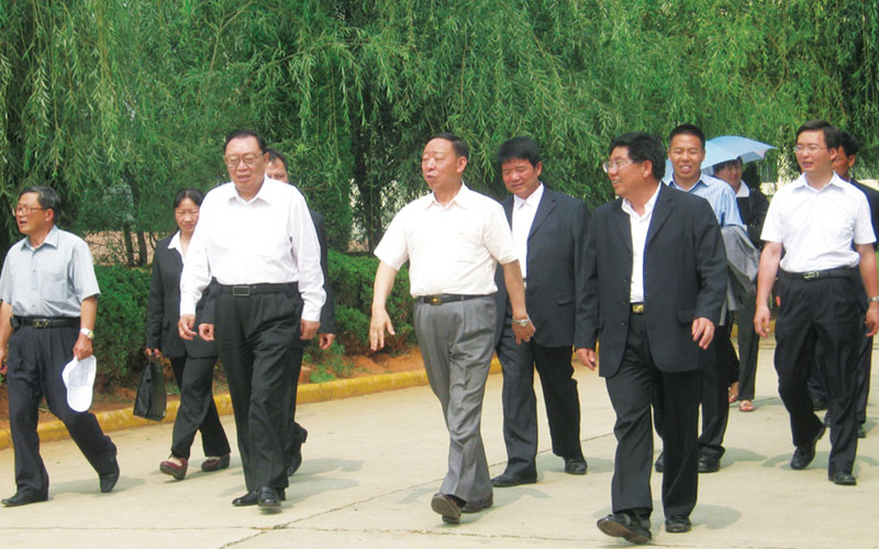 2009年7月,教育部总督学、中国民办教育协会会长陶希平(一排右三)等到校视察工作