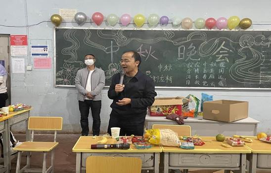 校领导每到一个班级都会表达学校对同学们的问候,常务副校长李地新在晚会现场发表了热情洋溢的讲话,他指出“今年中秋节同学们虽然不能回家与父母亲人团聚,但是学校就是你们的家,校领导及老师就是你们的家长,就是你们的亲人,同学就是你们的朋友,虽然你们远离家乡,在学校也一样能体会到家庭般的温暖,在学校也一样能过一个祥和愉快的中秋团圆节”。