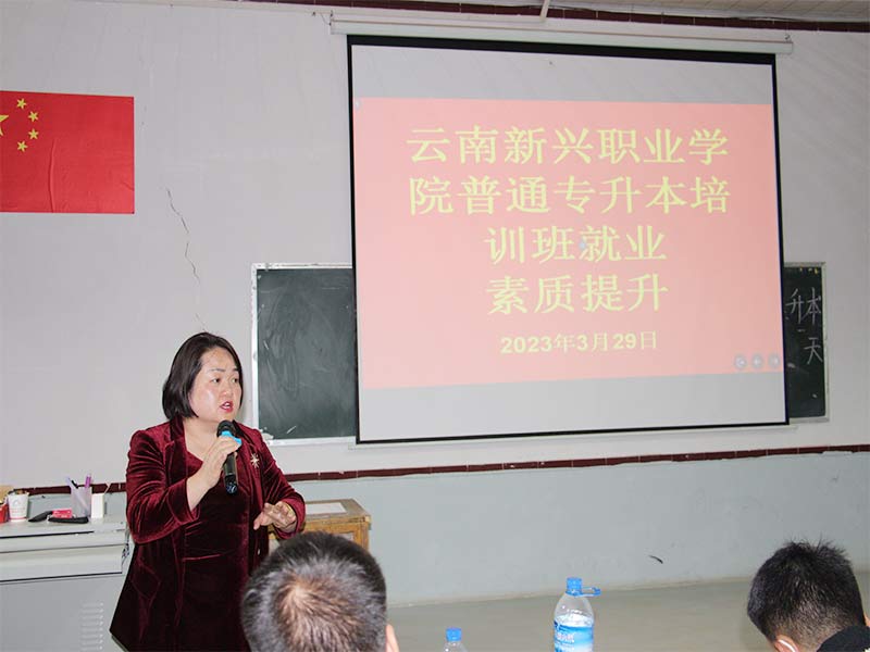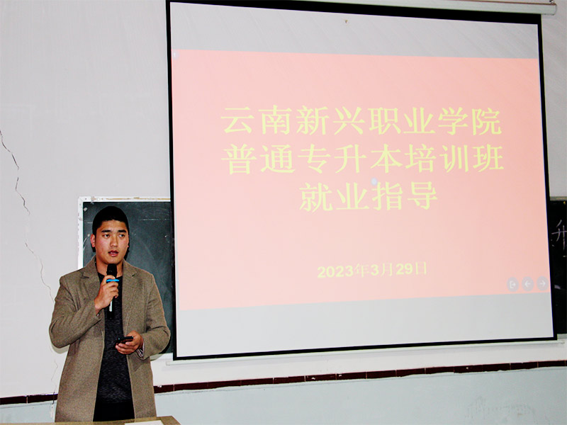 为深入贯彻落实党的二十大精神,实现更高质量和更充分的就业,2023年3月29日晚上,在学校党委委员、副校长杨亚梅同志的带领下,实习就处副处长钱锦智、实习就业处姚会文、艾培贵老师,一同到普通专升本培训班进行就业指导。
