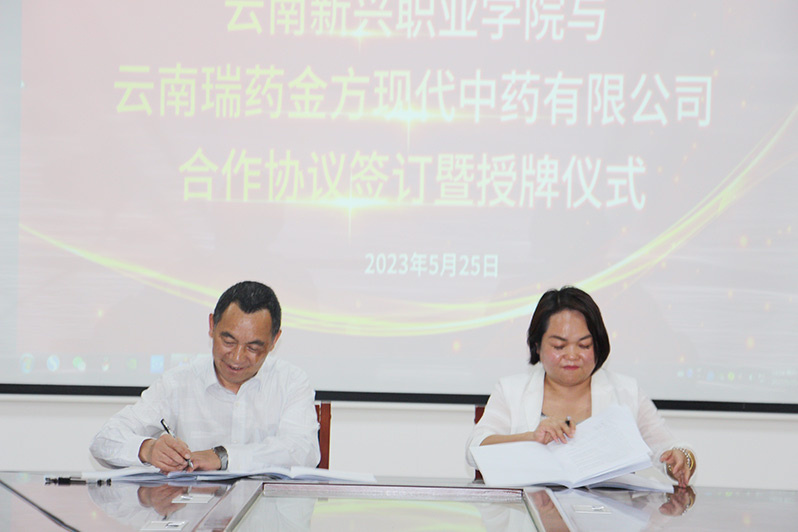 杨亚梅副校长与云南名瑞药金方现代中药饮片有限公司常务副总李文刚签订战略合作协议