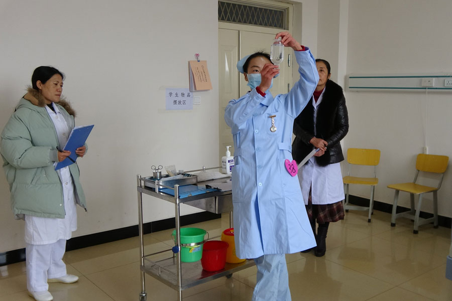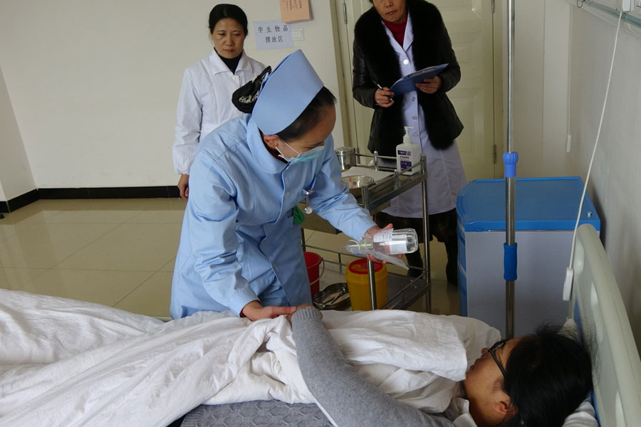 为贯彻落实国务院关于加快发展现代职业教育的决定,进一步推进护理专业教育教学改革,提高教师的职业教育教学能力和临床护理技能操作水平,不断提高人才培养质量。云南新兴职业学院于2017年12月16日早上7:30至下午18:00在学院实训楼举行了第二届教师护理技能大赛。本次大赛旨在进一步提高实践教学质量,提升教师素质,促进教学方法的改革与创新,达到以赛促教,以赛促研,以赛促学的目的。护理学院根据教学工作计划精心选择了比赛项目,制定了评分标准,参赛选手们也做了充分准备。