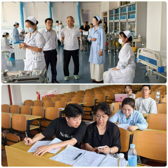 ▲护理学院各专家进行人才培养方案审定和参观实验实训室