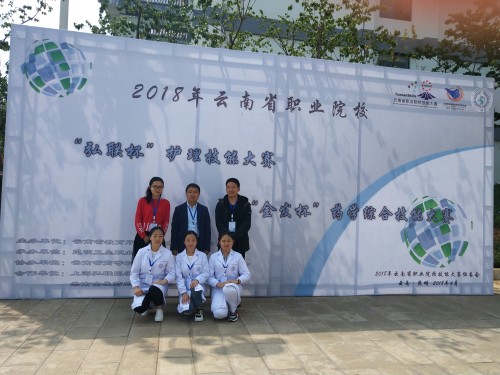 2018年4月10日~4月13日,由我院李彦升常务副院长,基础教研室吴坤主任,张美琴老师带领三位参赛选手到昆明卫生职业学院参加2018年云南省“金发杯”药学综合技能大赛。本次大赛共有10家高职院校参赛,其中公办院校7家,民办院校3家,每家选派3名选手,共计30名参赛选手。经过中药性状鉴别、药物分析、药物制剂配制和实践理论考核四个项目的激烈角逐,我院共有两名参赛选手获奖,按照大赛设奖45%,其中一等奖10%,二等奖15%,三等奖20%的比例计算,我院李永凤和管宴梅荣获三等奖。