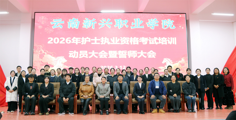 为凝心聚力备战2026年护士执业资格考试,激发学子备考斗志,明确培训备考方向,3月12日,云南新兴职业学院护理学院隆重举行2026年护士执业资格考试培训动员大会暨誓师大会,学院相关领导、护理专业授课教师及全体护考学子参会,共同吹响护考冲刺的号角。