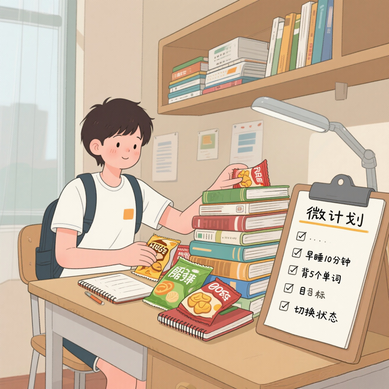 面对堆积的作业或新学期目标,很多同学会因“任务太重”而陷入拖延。此时,“微计划法则”能帮你打破僵局:将大目标拆解成每天可完成的小任务,比如“今天复习1章专业课笔记”“从每天早睡10分钟、背5个单词开始,小目标的成就感会积累成动力”,甚至“给辅导员发一条开学问候消息”。每完成一项,就在清单上打勾——这种“可视化成果”会带来强烈的成就感,逐步重建对生活的掌控力。