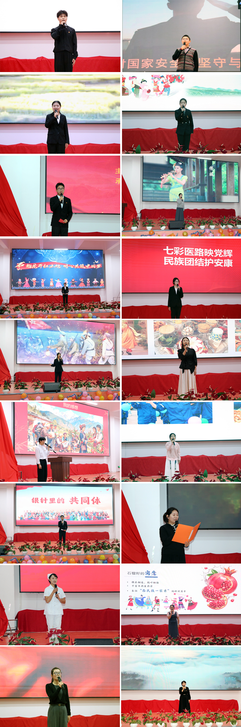 经过激烈角逐,教师组医学康复学院教师张艳丽凭借《澜沧石榴红:从时光里读懂团结的力量》荣获一等奖,护理学院教师陆喆喆、马克思主义学院教师华艾菲分别获二、三等奖;学生组护理学院孙慧超以《千年石榴根相连,今朝同心续华章》荣获一等奖,校团委刘翰林、护理学院方美盈荣获二等奖,医学康复学院白君欣、袁容和校团委梁倩获得三等奖。