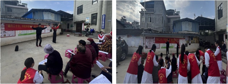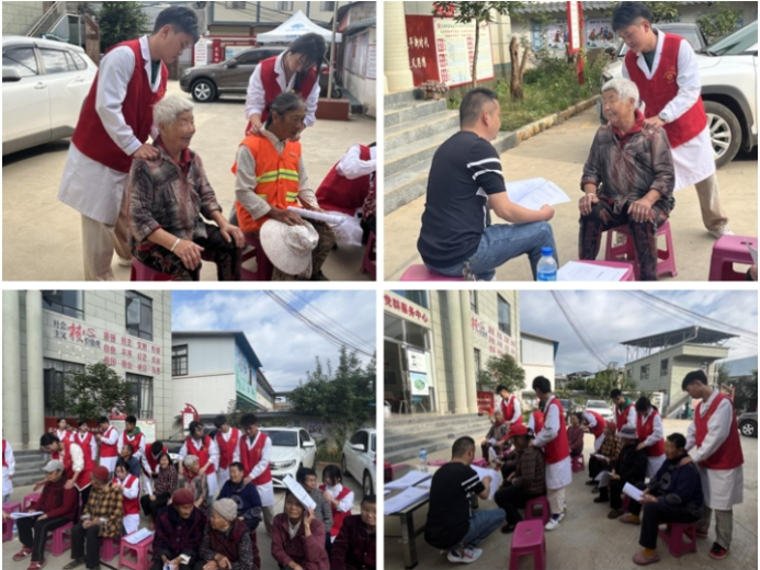 “尊老、敬老、爱老”是中华民族的传统美德。为弘扬中华民族尊老敬老的传统美德,展现新时代学生风貌,增强老年居民对健康的关注;并运用所学为老年居民宣传健康知识、提高老年人的健康生活水平,增强基础医疗健康服务力度,促进社会主义精神文明建设。2023年10月20日上午, 云南新兴职业学院药学院团总支书记的组织下,青年志愿者在禄劝县崇德街道角家营社区党群服务中心,开展了以“青春践行党的二十大,用奉献暖人心”为主题的志愿服务活动。