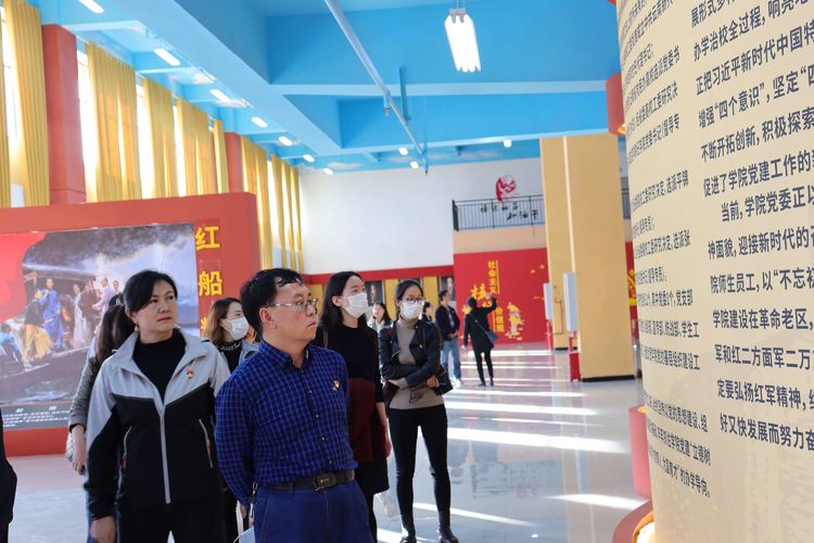 接着,在校副校长李艳梅、马克思主义学院副院长李晓慧的陪同下,旅职院的老师们又参观了我校党建中心,3200平方米建筑面积是目前云南省内最大的党建中心。他们充分赞扬了我校的党史教育在文化引领、党史引领、精神引领上的鲜明特点,纷纷赞叹我校利用自身特有的红色资源开展一系列教育教学活动,有特色,有成效,特别值得他们借鉴和学习。