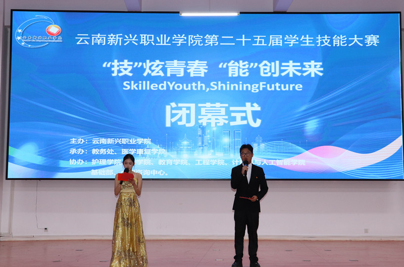 冬韵蕴雅趣,竞技聚贤才。2025年12月11日,云南新兴职业学院第二十五届学生技能大赛闭幕式暨颁奖典礼在学校报告厅隆重举行。历经三周的激烈角逐,从预选赛的蓄力比拼到总决赛的巅峰对决,这场以“‘技’炫青春,‘能’创未来”为主题的技能盛会圆满收官。学校党委书记(督导专员)马武宏,党委委员、常务副校长李地新,党委委员、副校长潘琼等校级领导,及各二级学院、职能部门负责人参加活动,与全体获奖师生共赴荣耀之约,共证辉煌篇章。闭幕式在大赛精彩瞬间回顾视频中缓缓拉开帷幕。镜头之下,学子们专注实操的坚毅身影、团队协作的默契无间、突破自我的欢欣雀跃,生动诠释了“劳动光荣、技能宝贵”的青春内核,引发全场深度共鸣。