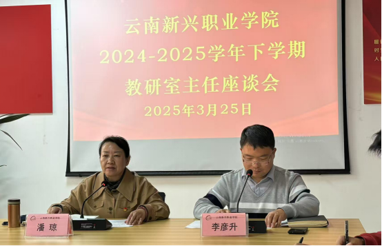 云南新兴职业学院教学部门于3月25日下午召开2024-2025学年下学期教研室主任座谈会。座谈会聚焦加强学校与基层教学单位沟通、倾听一线授课教师心声、推动教育教学高质量发展。潘琼副校长、教务处姚林冬副处长及全校教研室主任参加会议,会议由发展规划与科研处李彦升处长主持。