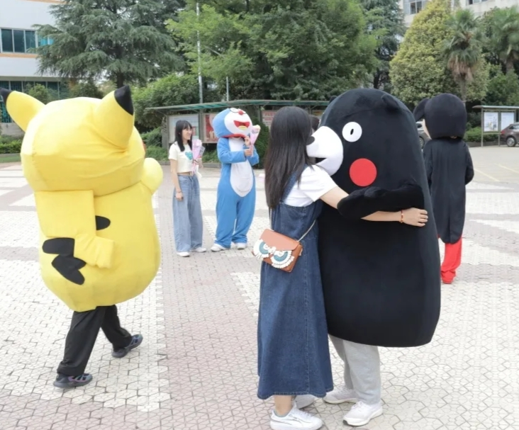 “爱的抱抱”活动现场,几名成员穿上卡通服,给路过的同学送去爱的抱抱,爱的抱抱主题是拒绝冷漠,传递温暖,让爱蔓延此次活动现场还摆放了“感恩”和“祝福”两块展板,不少同学也可以写下对自己好友,家人,学院的感谢与祝福,或是自己大学三年心愿和梦想,同学们可以一起拥抱和合影。每位真诚的写出感恩与祝福的同学,都将获得一份小小的礼物有糖果、零食、书刊、笔记本等。