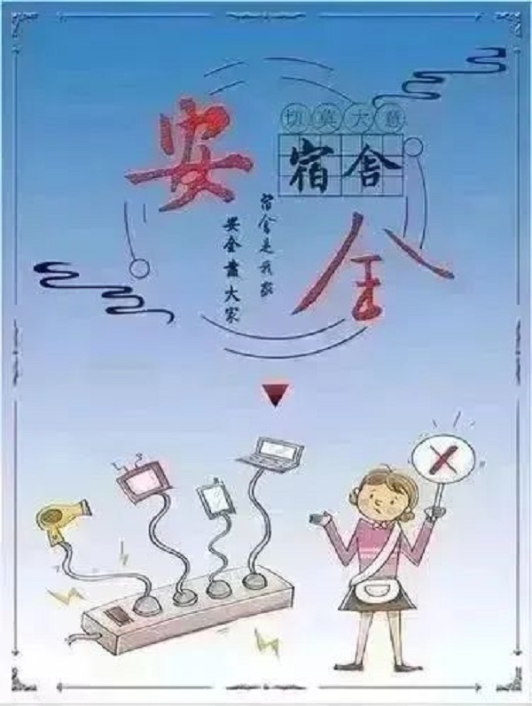 2.教室:尽量避免独自在教室中,携带好随身物品,及时注意周边的人和发生的事。注意教室内电器使用及电器维护,防止电器事故造成事故。注意教室内电路线等物品,避免发生触电事故。