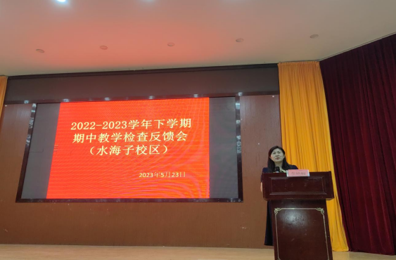 首先,教务处李艳强副处长对本次期中教学检查情况进行了总体反馈,并对教育教学工作的发展提出了新的要求和设想。此次检查存在以下问题:一是部分老师对学生不够关心,课堂上缺少有效互动,导致学生的课堂参与度不高;二是部分老师的授课方式过于单一,缺乏创新,教学内容老旧,缺乏深度,教学方法需要进一步提高和改进;三是部分学生的答卷能力和思维能力还需要进一步提高。