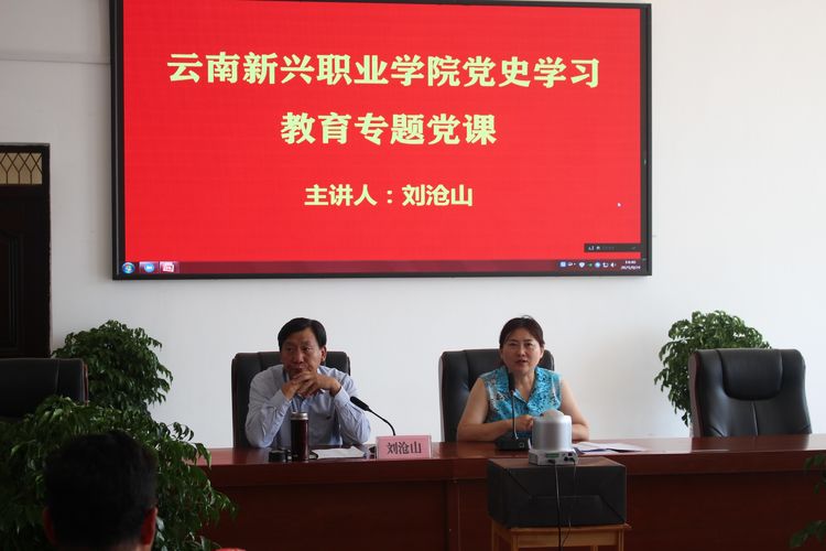 中秋刚过,2021年9月24日,云南省委教育工委党史学习教育第七巡回指导组的领导来到云南新兴职业学院进行第二轮巡回指导,下午2:30在新校区仁德楼402会议室设了主会场,同时在护理学院阶梯教室10-110、医学康复学院党员活动室、 水海子校区行政楼会议室、 白沙河校区会议室分别设置了四个分会场。进行了“学党史,听党话,跟党走,努力推动学校改革发展稳定各项工作再上新台阶”为主题的专题党课。