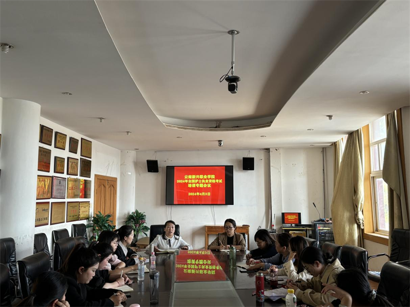2024年4月3日下午,护理学院水海子校区在行政楼会议室召开了2024年全国护士执业资格考试培训专题会议,学校潘琼副校长、护理学院张艳秋副院长以及全体护培任课教师、辅导员参加会议。