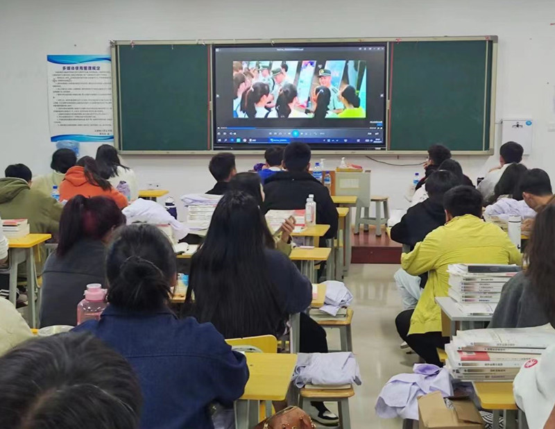 各班级学生在活动过程中认真观看征兵宣传片,报效祖国投身军营是很多青年大学生从小的梦想;在本次观看过程中,宣传片里的军营生活深深吸引了同学们的目光,强化了学生们的爱国拥军意识,把征兵宣传与学生的意识形态工作有机结合在一起。