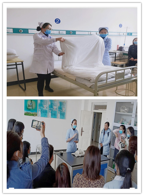 此次护理操作教学统一由四个护理教研室积极参加,分别是:基础护理教研室、内科护理教研室、外科护理教研室、妇儿护理教研室,近80名一线授课教师兵分两路学习了三项实训教学。三项护理实训操作分别为:皮内注射(ID)、铺床法(备用床、暂空床、麻醉床)和无菌技术。