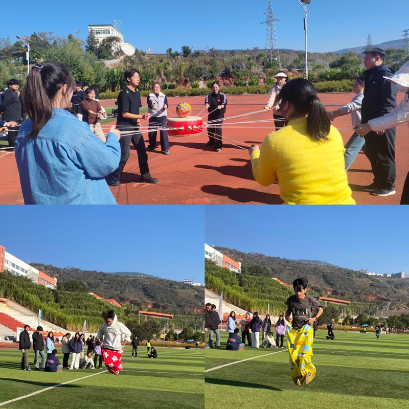 为深入贯彻落实《关于全面加强和改进新时代学校体育工作的意见》,丰富校园体育文化生活,锤炼师生团队协作与拼搏精神,11月28日——29日,作为云南新兴职业学院第一届体育文化节暨第十七届冬季运动会的重要组成部分,由学校主办,心理咨询中心、长征研究中心牵头组织的趣味运动会在校园内热闹开赛。本次趣味板块覆盖全校5大学院及全体教师队伍,精心设计12个趣味项目,累计参与项目达132项,辐射师生1650余人,以低门槛、强互动的独特魅力,让师生在欢乐竞技中强健体魄、凝聚情谊,为整场体育文化节增添了浓厚的欢乐氛围与协作气息。