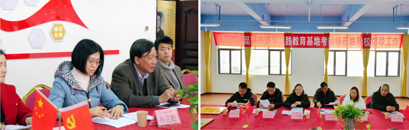 12月13日,昆明市中小学研学实践教育基地考察组由富民县教育体育局德宣科科长王珊珊带队到云南新兴职业学院红色文化展示园对市级中小学研学实践教育基地进行实地考察评审。禄劝县政府总督学、县教育体育局、云南新兴职业学院有关领导陪同考察。