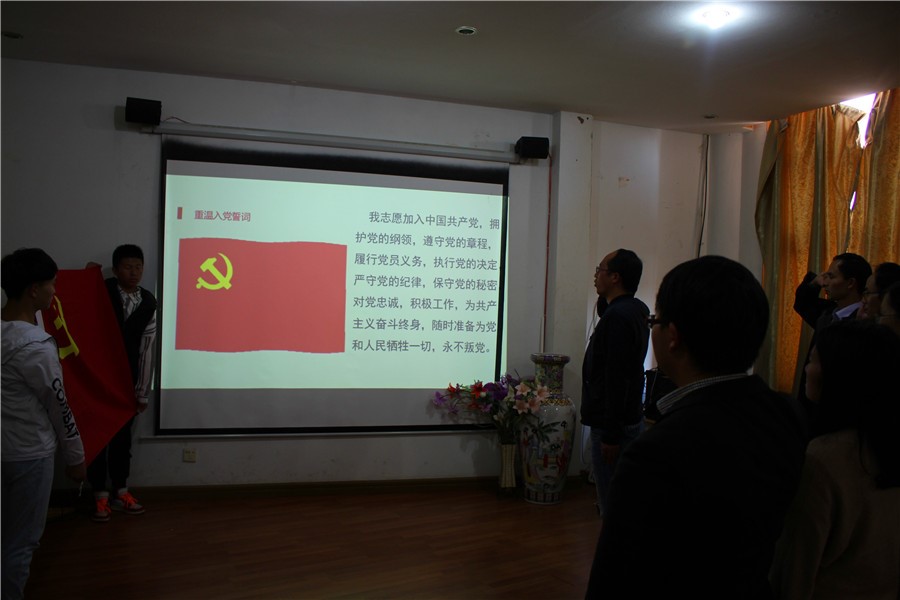 此次活动以党性教育和理论学习为主要形式。通过集体佩戴党徽,奏唱《中华人民共和国国歌》;党支部书记李彦升同志上党课,集体学习新修订的中国共产党章程;支部组织委员余朝良同志作《加强和改进新时代高校思想政治工作》的理论学习分享;支部宣传委员阮金华同志带领于会党员、预备党员重温入党誓词;支部书记总结讲话;全体党员学唱《国际歌》;最后合影留念等七项议程依次进行。