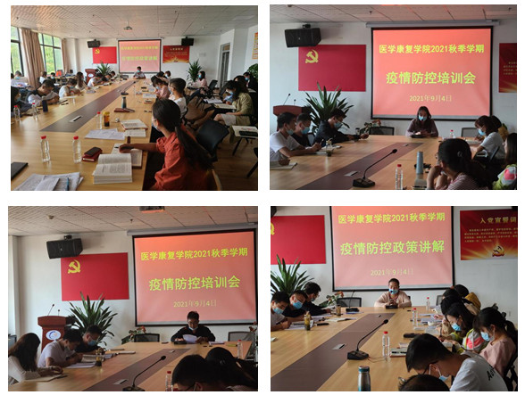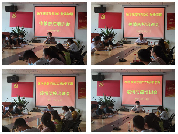 我校积极响应云南省教育厅文件,力求做到严防死守。下属医学康复学院为动员部门教师做好疫情防控工作,于2021年9月4日由医学康复学院院长杨炳金以及师永双和罗祥奇副院长带头进行疫情防控培训会议。
