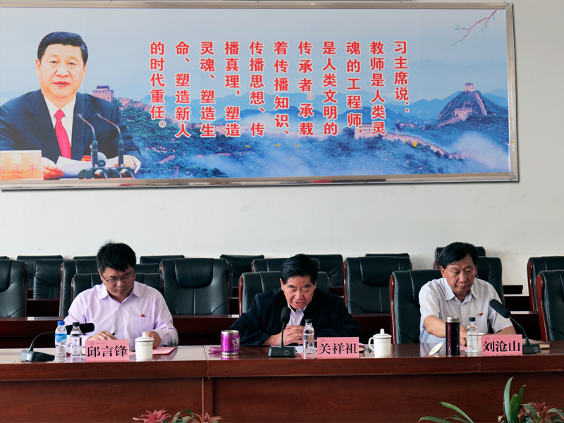 调研座谈会上,学校董事长关祥祖向调研组领导汇报了学校的办学情况。